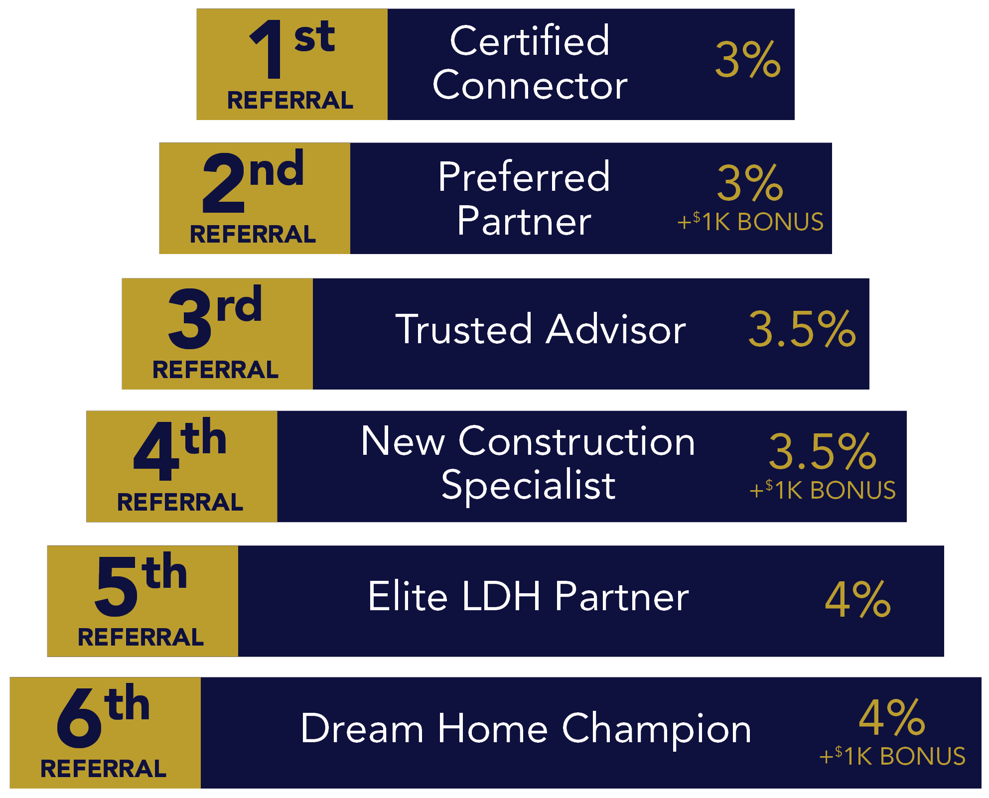 LDH’s Real Estate Agent Loyalty Program is designed to reward agents with increasing commission percentages—and